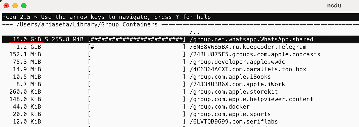 Usut punya usut ternyata WhatsApp Desktop itu lumayan ngehabisin hampir 25GB sendiri, itu kerasa banget sih, apalagi saya yg pakai Macbook 256GB :(